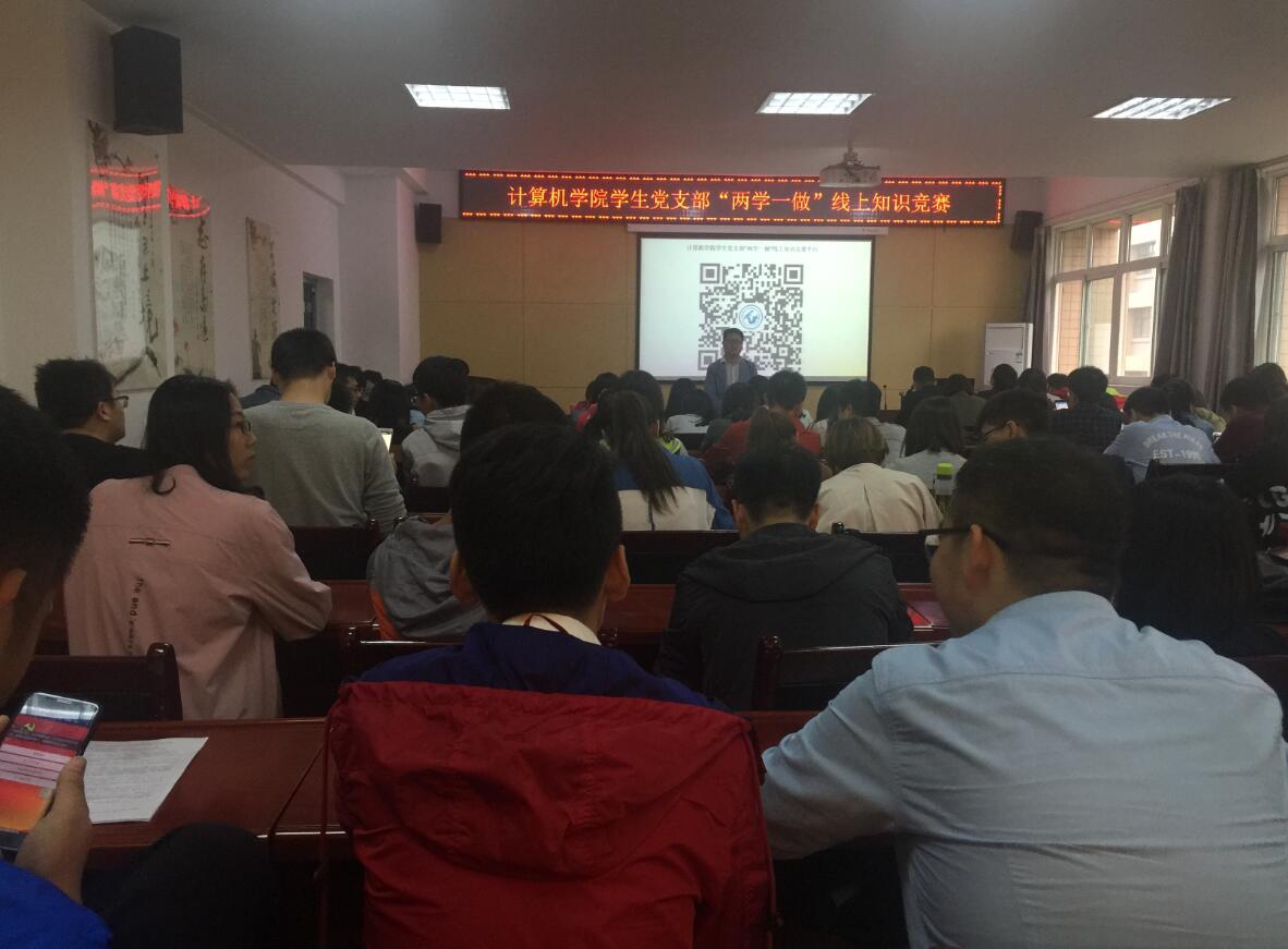 为贯彻落实《关于推进“两学一做”学习教育常态化制度化的意见》,深入学习习近平总书记系列重要讲话精神,满怀信心的迎接党的十九大胜利召开,9月4日下午,计算机学院学生党支部在临潼校区16教323会议室举办“两学一做”学习教育线上知识竞赛活动,计算机学院学生第三党支部书记胡军卫、学生第三党支部、第一党支部全体党员及部分入党积极分子100余人参加了此次活动。各位参赛选手通过赛前学习,现场线上答题的形式,经过激烈角逐,最终软工1401班张心应等8人获得一等奖,计科1401班王特等10人获得二等奖,软工1501班杨柳等17人获得三等奖。