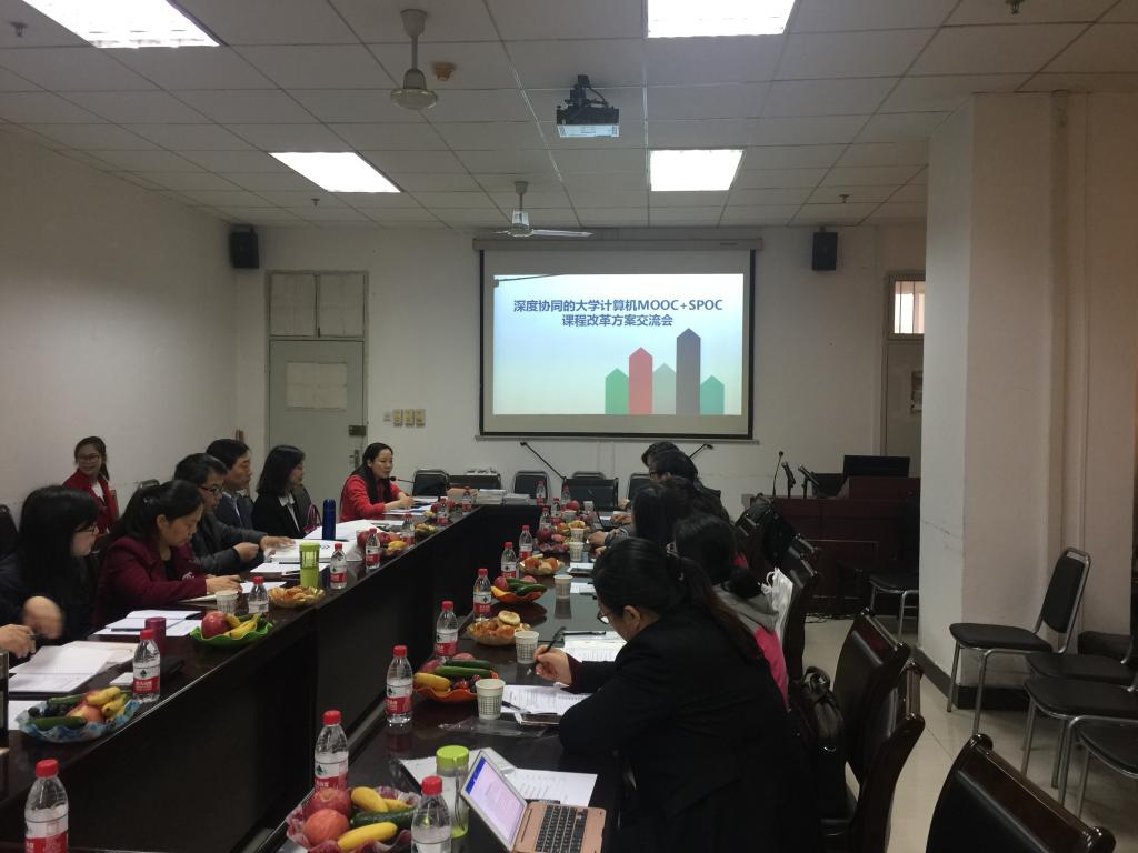 会上,贾澎涛副院长对我院计算机基础课程进行MOOC+SPOC课程改革情况进行汇报。李凤霞教授高度评价我院在大学计算机基础课程方面所做的改革工作,尤其是SPOC课程后,在教学中对翻转课堂的良好应用对提高学生学习主动性有明显帮助。希望全体参会教师代表以MOOC+SPOC课程改革为契机,积极学习借鉴国内外先进的教学理念和教学模式,大力进行教学改革探索实践。李凤霞教授做关于深度协同的大学计算机MOOC+SPOOC课程方案报告,并且就教育教学改革发展动态给教师代表们做了详尽解读。