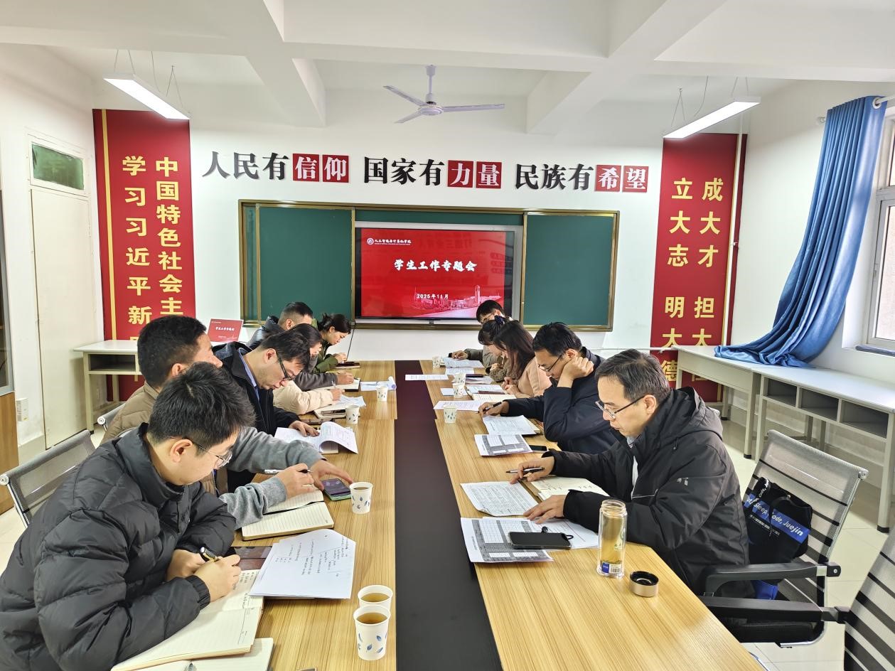 会上,各专项工作负责人依据学生工作考核办法,围绕思想政治教育与学生党团建设、学生日常管理、学生指导与服务、学生学业成果、队伍建设等方面对本年度的学生工作进行梳理总结,对下一步工作计划进行说明;毕业班辅导员围绕毕业生就业、考研工作近期开展情况及下一步举措进行汇报;新生辅导员就朋辈班主任选拔、晚自习、上课考勤、基础课程模拟考试与答疑、家校沟通等方面进行汇报;郭胜忠对审核评估整改验收工作与学生相关部分进行任务分解。