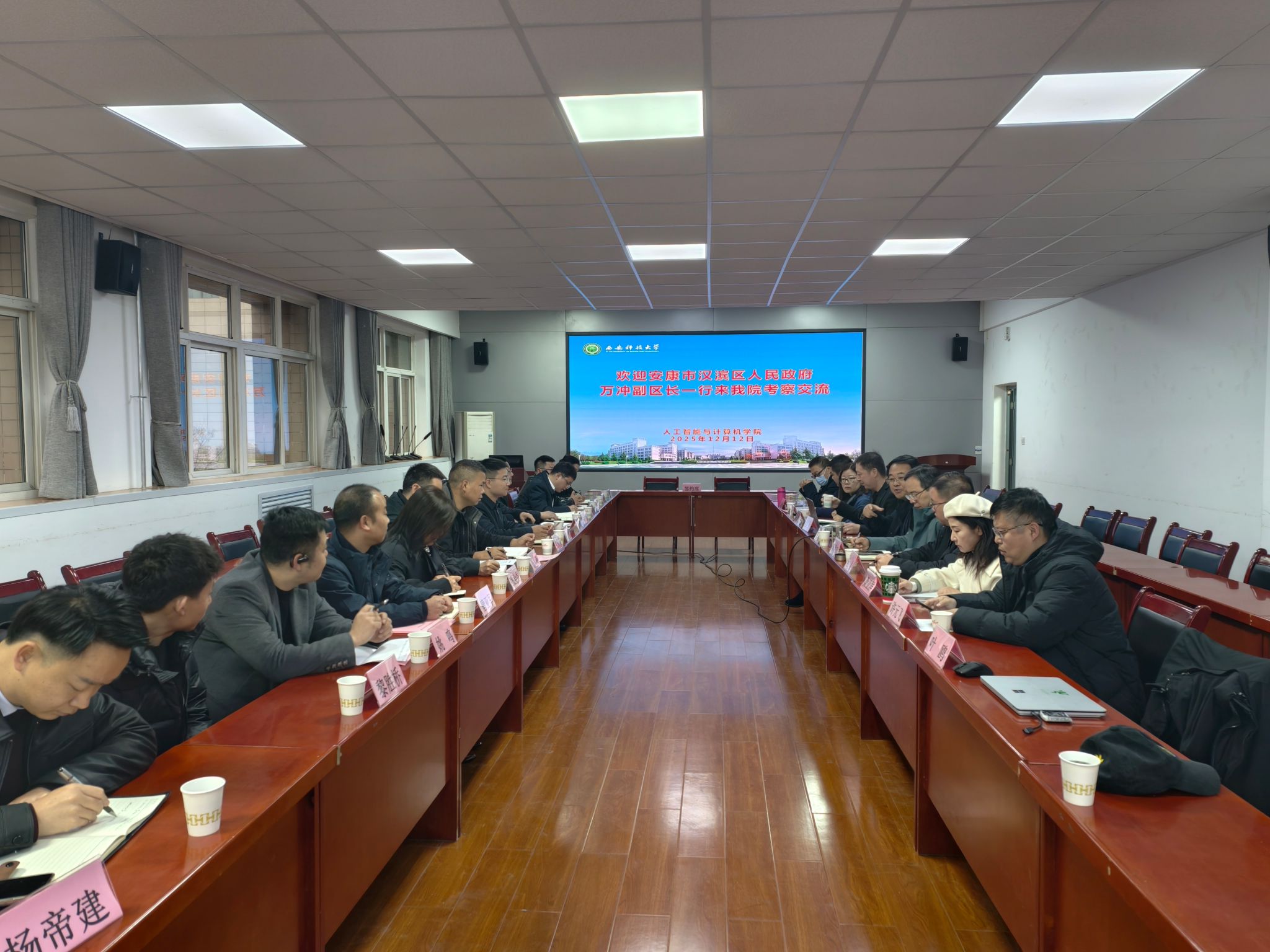 万冲简要介绍了安康市汉滨区的人文历史和社会经济发展情况并说明了此次调研的目的。他表示,希望以本次调研为契机,拓展双方在技术咨询服务、科研成果转化、平台共建共享、项目联合申报等领域的合作,共同构建“政-校-产”高效融合的创新生态体系,为区域数字经济持续健康发展提供支撑。
