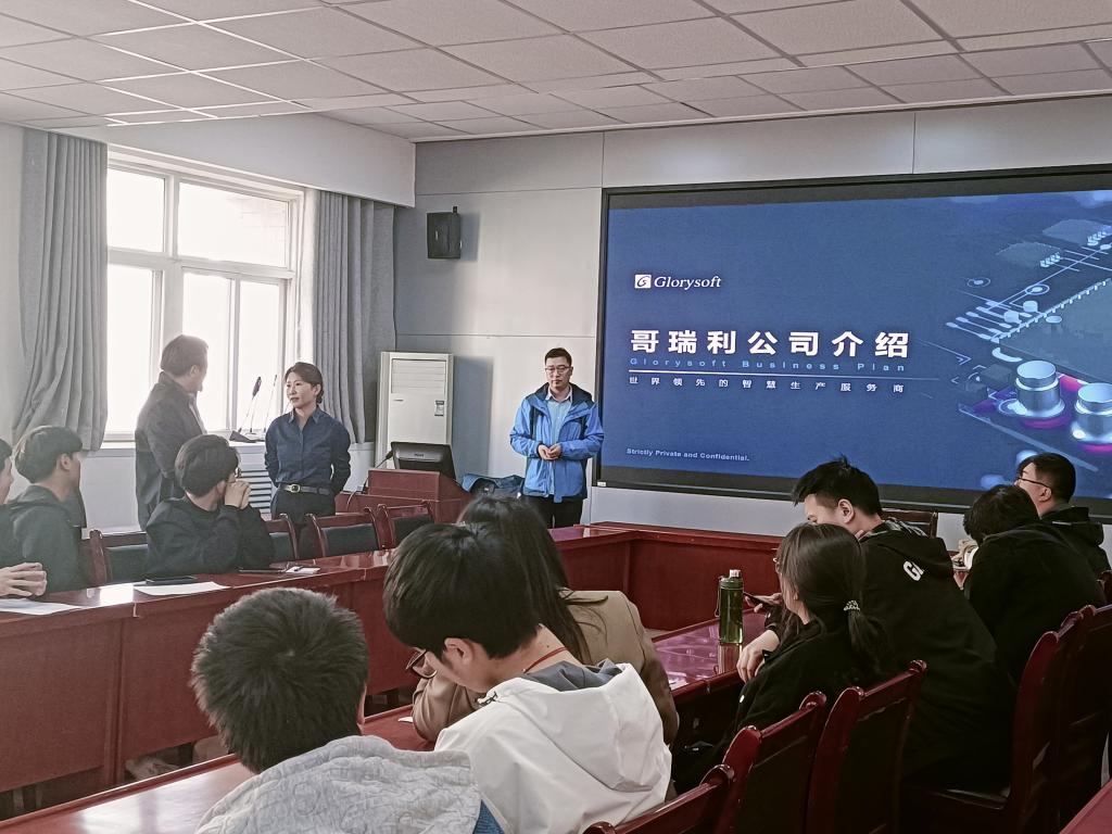 下午,哥瑞利软件股份有限公司招聘负责人结合当前就业前景,介绍了其公司的基本情况、主营业务、优势及核心竞争力以及招聘岗位的具体要求,并向同学们分析了近10年来的需求变化及公司做过的具体项目、研究方向、员工待遇等方面作了详细介绍。