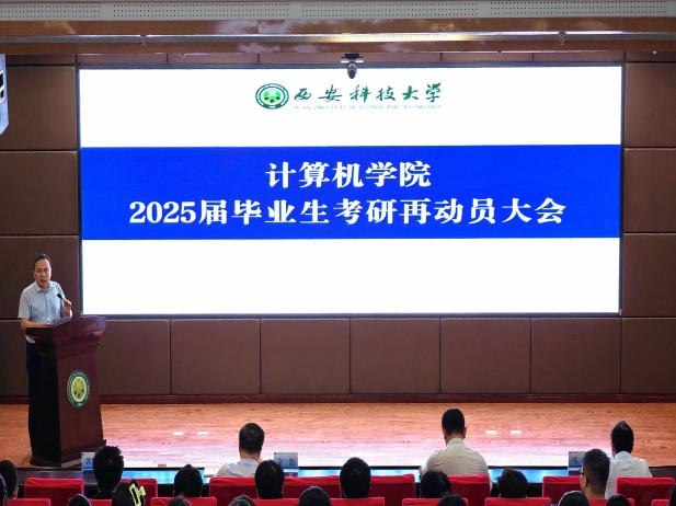 为做好2025届毕业生考研指导服务工作,7月11日上午,计算机学院在临潼校区骊山校园煤炭科技楼二楼报告厅召开考研“再”动员大会。学院相关领导、辅导员、2021级本科生考研代表200多人参加了本次会议,会议由学院党委副书记郭胜忠主持。