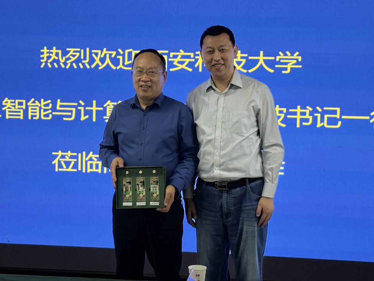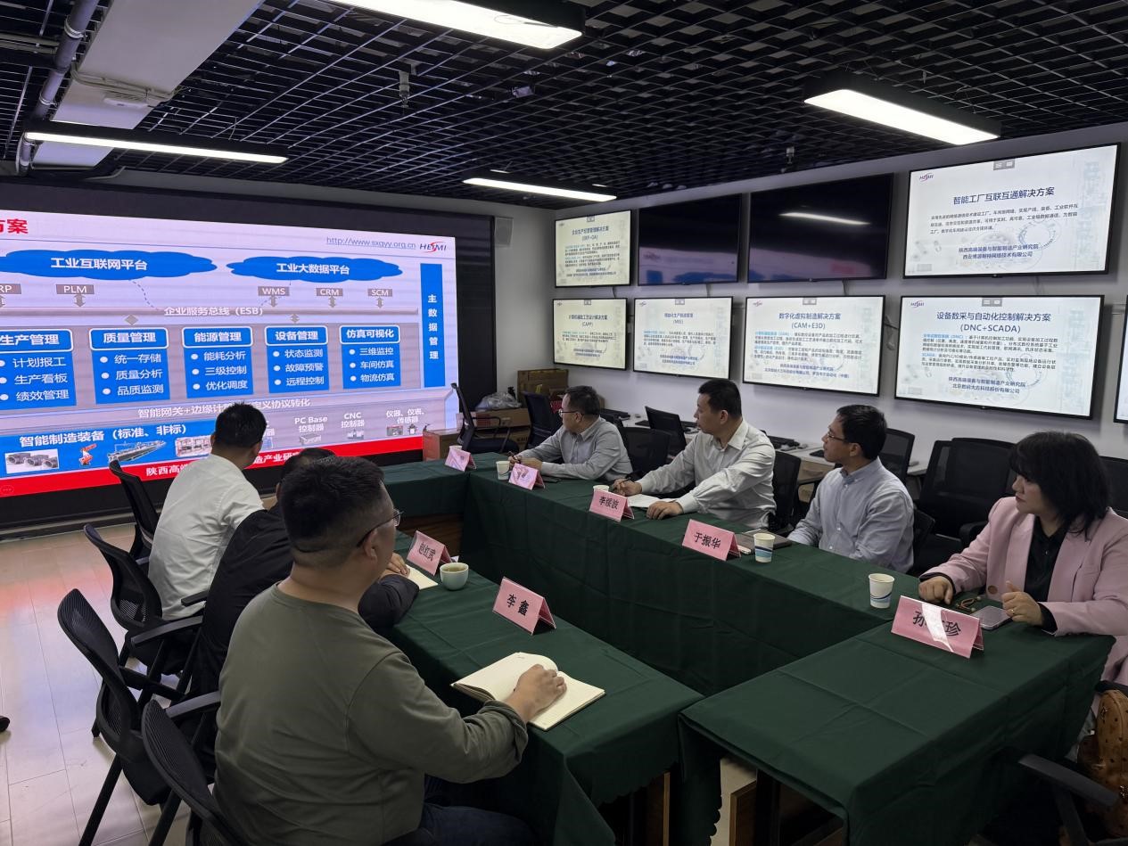 在陕西高端装备与智能制造产业研究院,我校校友、研究院院长赵红武对我校一行的到来表示欢迎,他详细介绍了研究院的发展历程、核心业务及未来规划。于振华介绍了学院在学科建设、师资力量、科研成果及人才培养等方面的优势,并就科研合作、产学研交流、学生就业等方面与研究院进行了深入探讨。