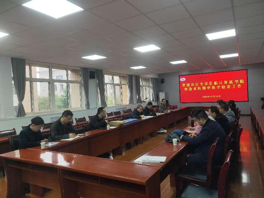 为加强对教学过程的监测与管理,切实提高本科教学质量,11月14日上午,学校教务处副处长王树奇以及学校教学督导组一行六人到学院对本科期中教学检查工作进行指导和检查。计算机学院教学副院长金浩、各系部主任和副主任参加会议。