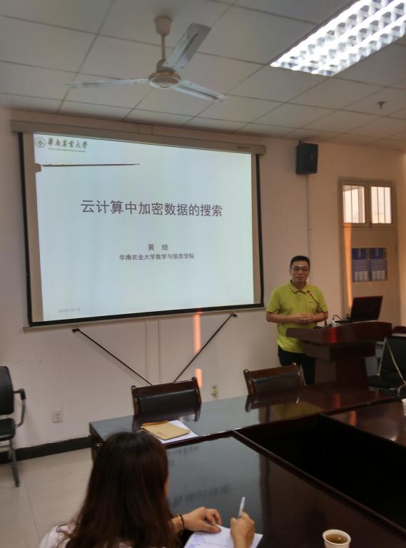 10月15日下午5:00,华南农业大学数学与信息学院、软件学院副院长,硕士生导师黄琼教授在我院410会议室做了题为《云计算中加密数据的搜索》的学术讲座。我院全体研究生同学和部分老师参加了本次讲座。