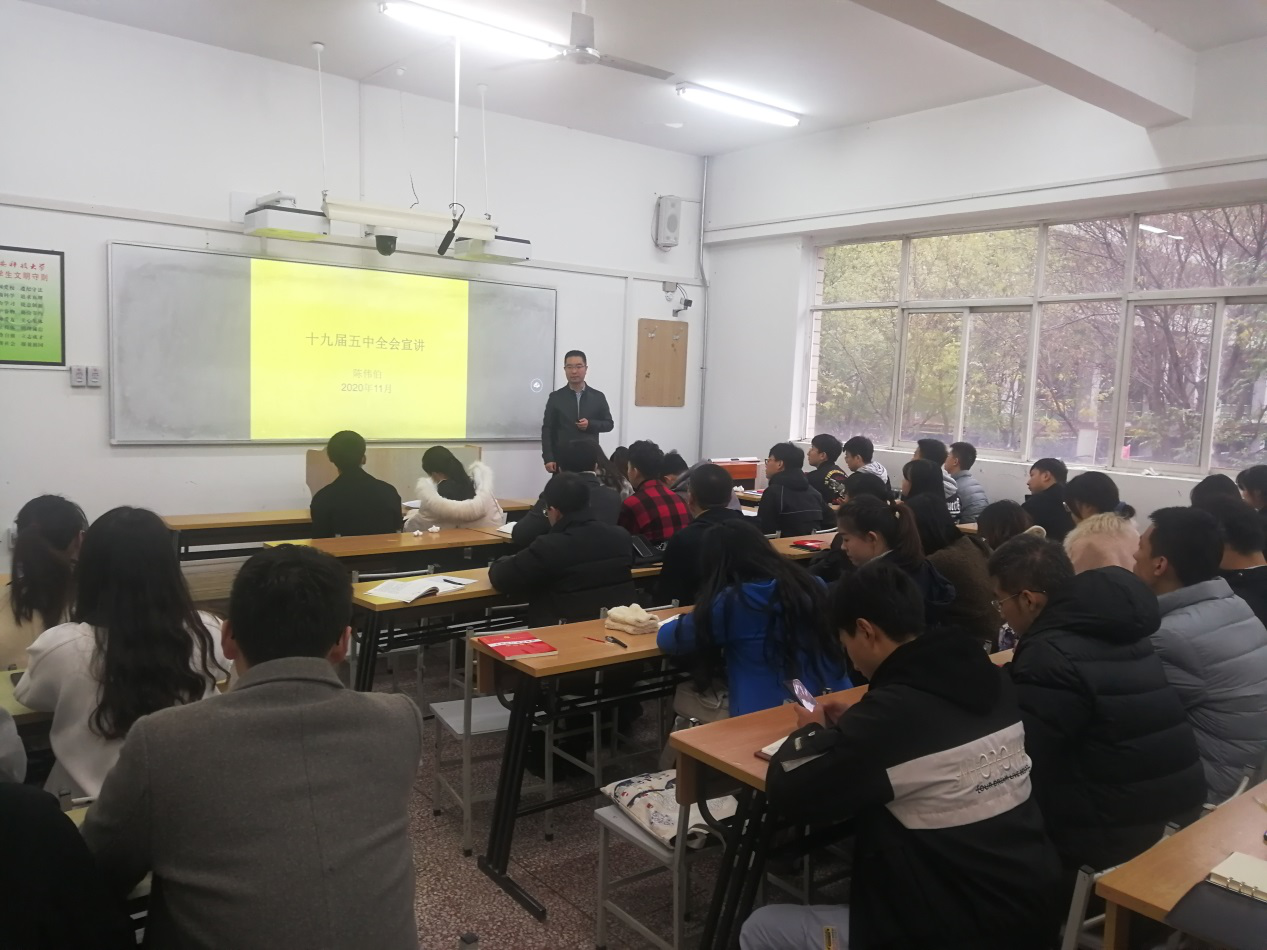 2020年11月20日下午,为深入学习贯彻十九届五中全会精神,2020级学生党支部邀请学院党委副书记陈伟伯,为全体党员进行了一次“十九届五中全会”宣讲主题党课,共同学习十九届五中全会的主要内容和精神。