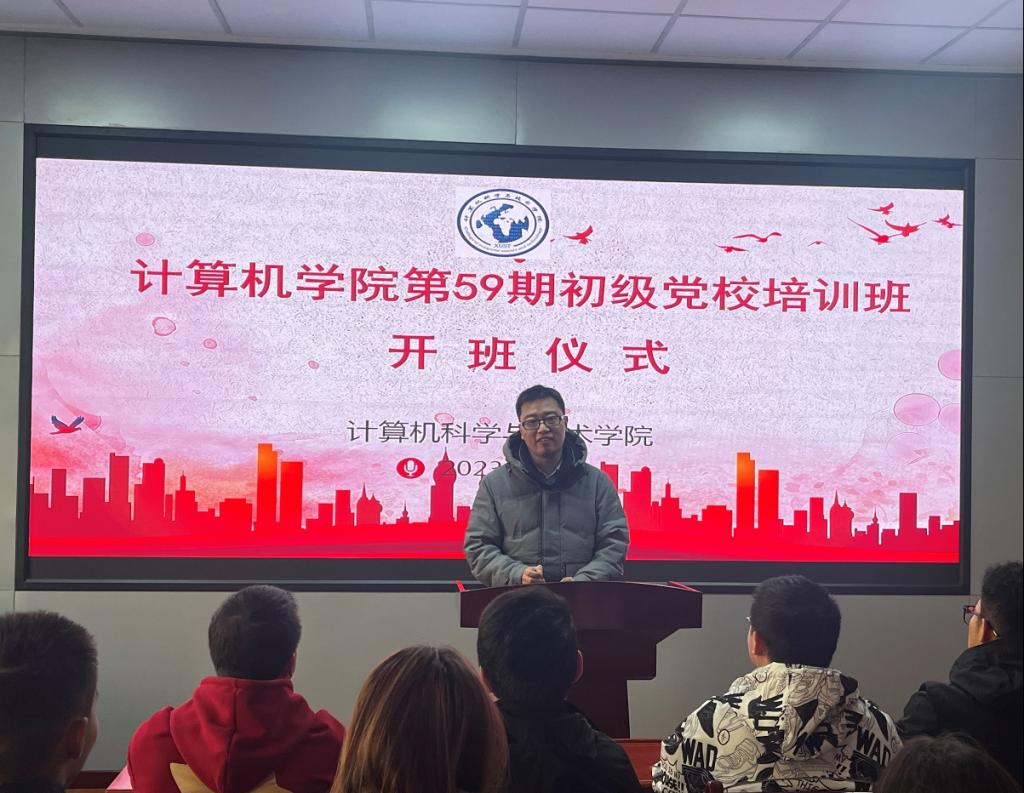 为深入学习贯彻党的二十大精神,加强对入党积极分子的教育培养,进一步端正入党动机,提升政治理论素养,11月24日,计算机学院在骊山校园15教323会议室举行第59期初级党校培训班开班仪式暨培训第一课。