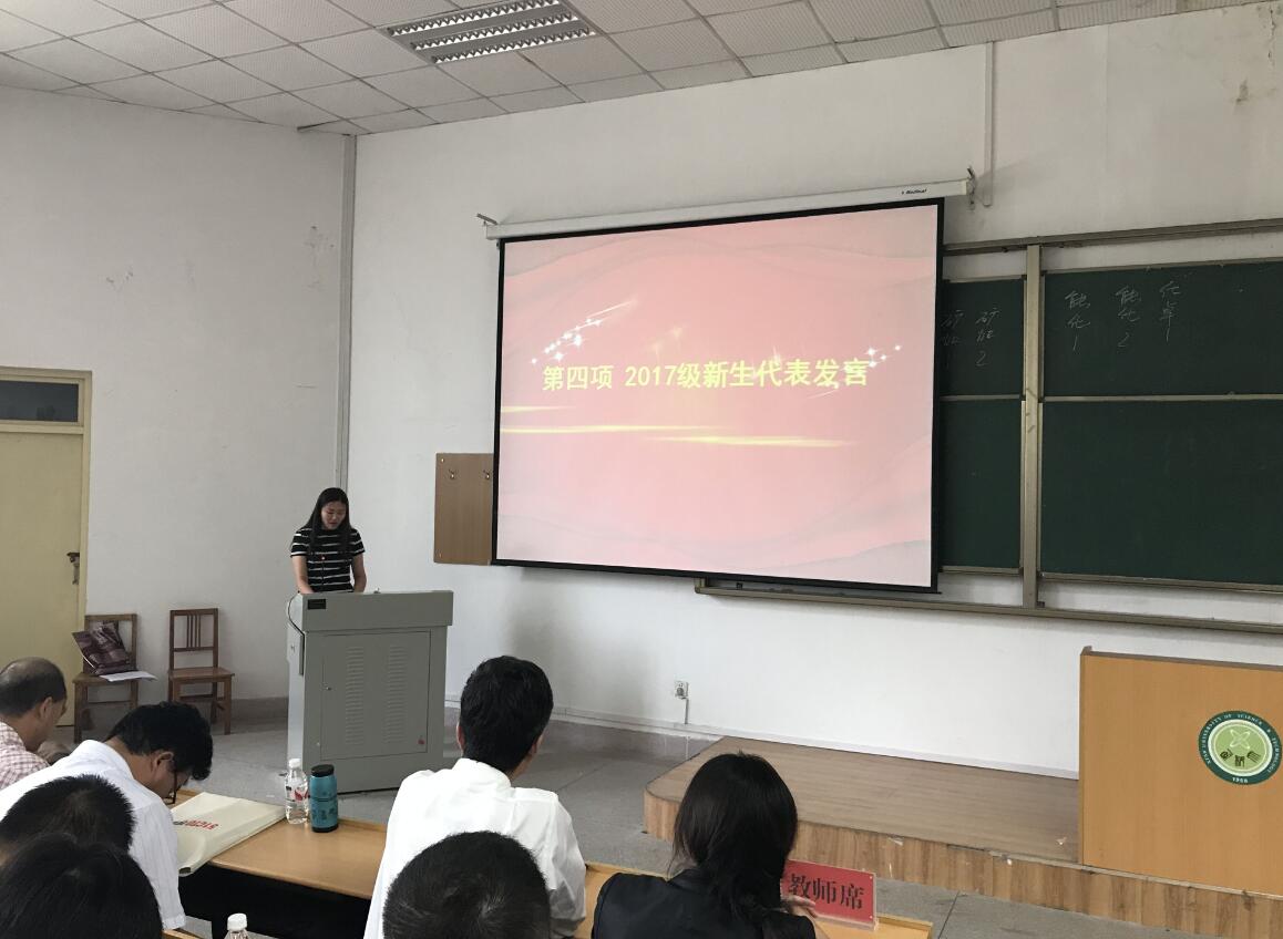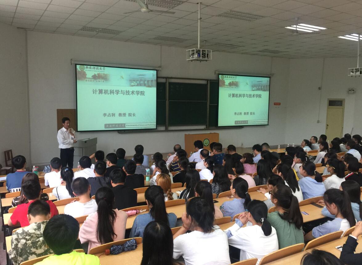 9月8日上午,计算机学院在临潼校区9#105召开2017级本科生开学典礼暨专业介绍会。计算机学院党委书记冯爱玲、副书记陈伟伯、院长李占利、副院长贾澎涛、副院长马天,各系(部)主任及实验室、计算中心、创新创业教育中心相关负责人、全体辅导员及教师代表和300多名2017级新生参加了开学典礼。大会由我院分团委书记马继刚主持。