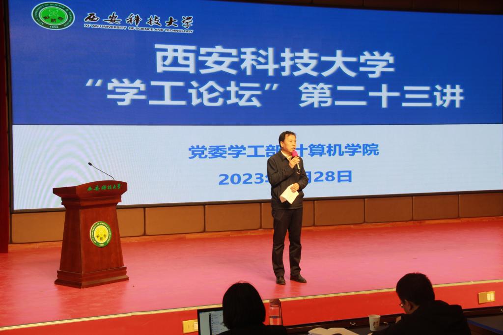 4月28日上午,188改名taptap“学工论坛”第二十三讲在临潼校区骊山校园煤炭科技中心一楼报告厅举行,校党委副书记陈春林,学工部、团委、计算机学院负责人,全体学工干部和计算机学院学生代表参加此次活动。
