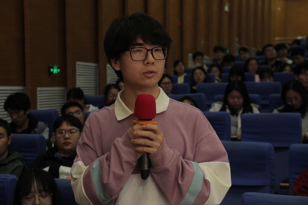 讲座现场氛围热烈,蔡鹏与同学们进行了长时间互动交流。