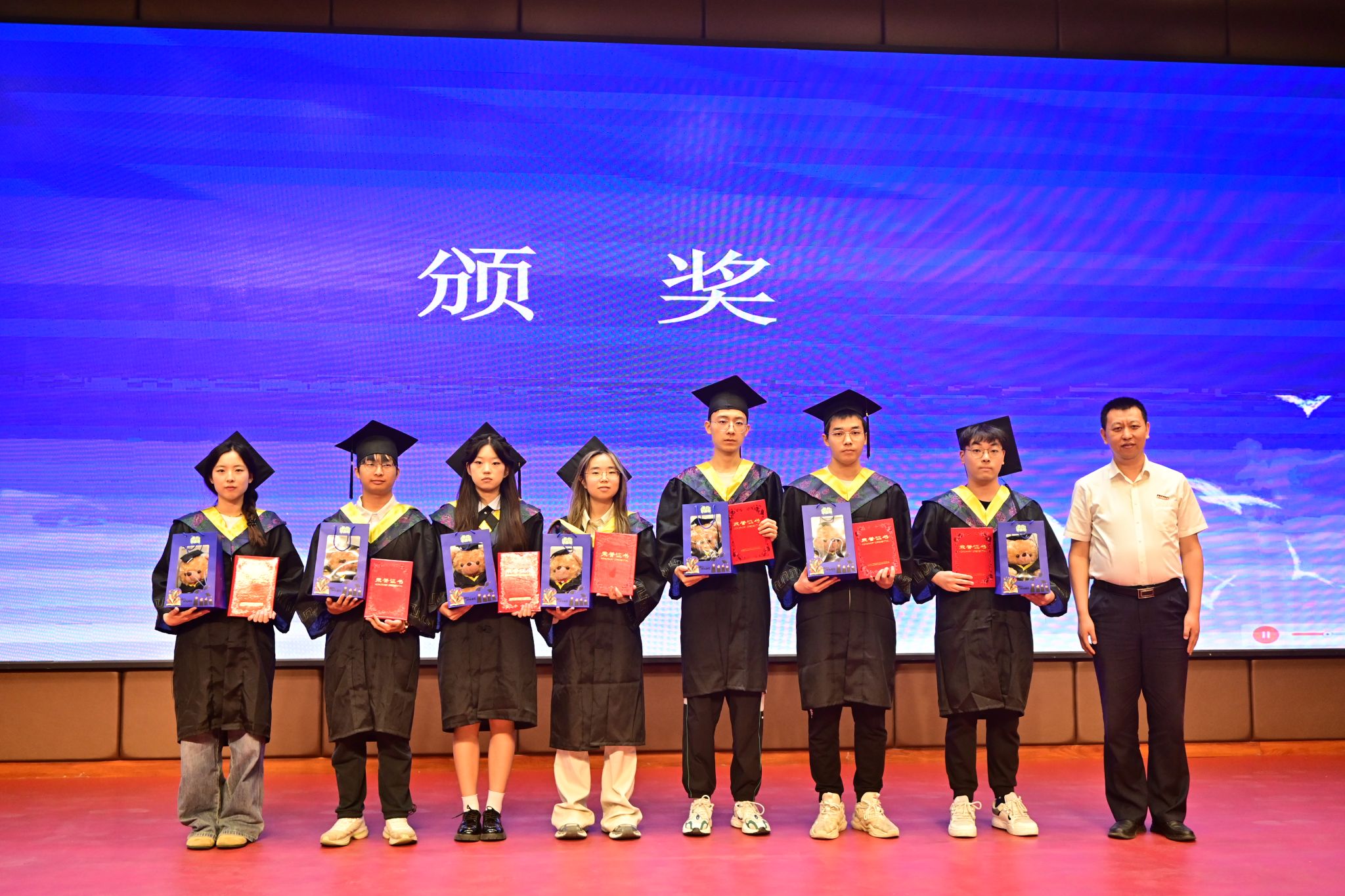 副院长马天宣读了《关于表彰2025届优秀毕业生的通报》《关于表彰2025届“进疆赴藏“及“基层项目”毕业生的通报》《关于聘任校友联络大使的决定》,副院长金浩宣读了《关于准予 2025 届本科生、第二学士学位毕(结)业和授予学士学位的决定》以及《关于准予 2025 届研究生毕业并授予学位的决定》,党委书记李绥波为受表彰的学生颁发证书和奖品,为毕业生代表赠送毕业纪念品。