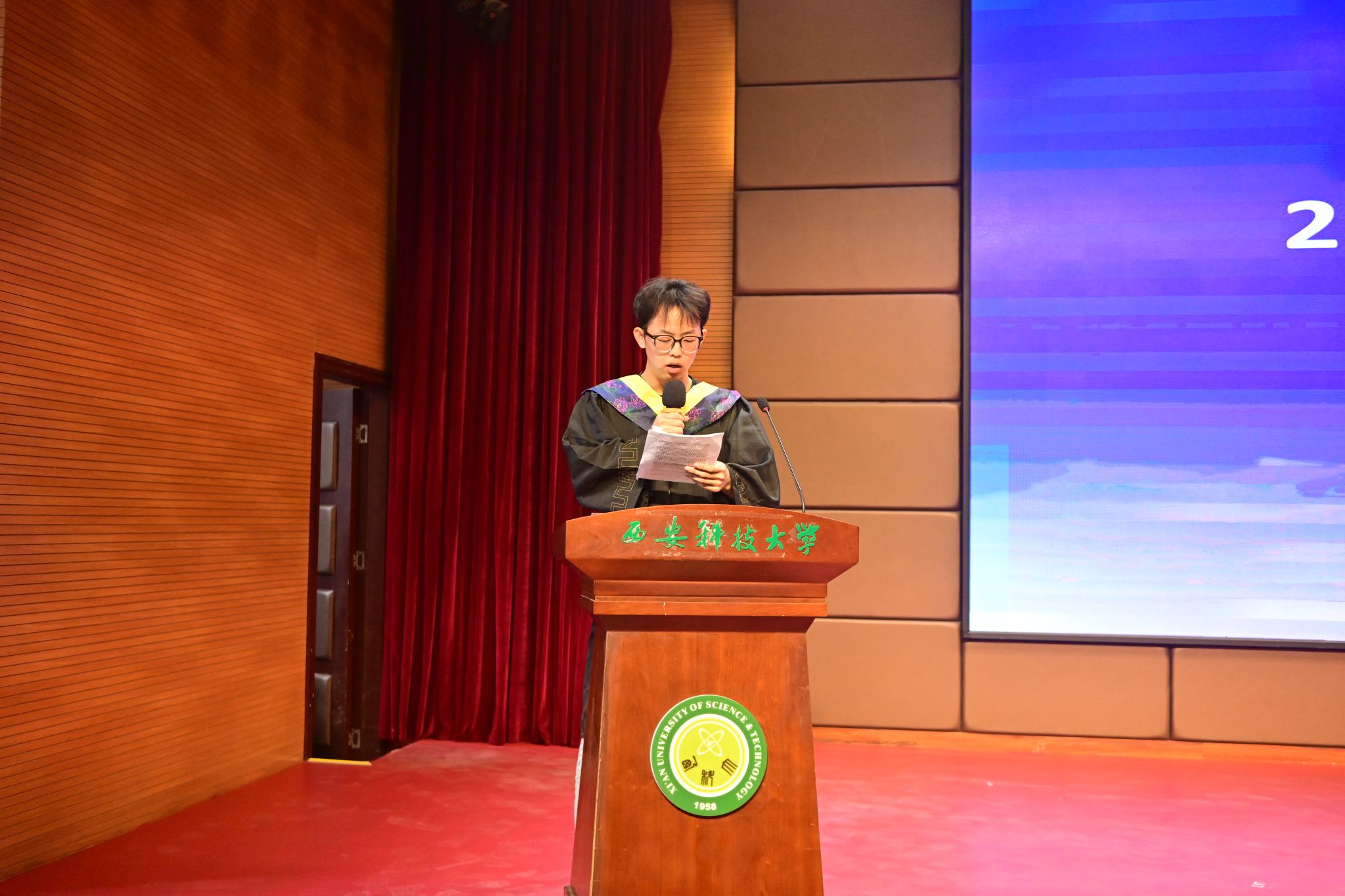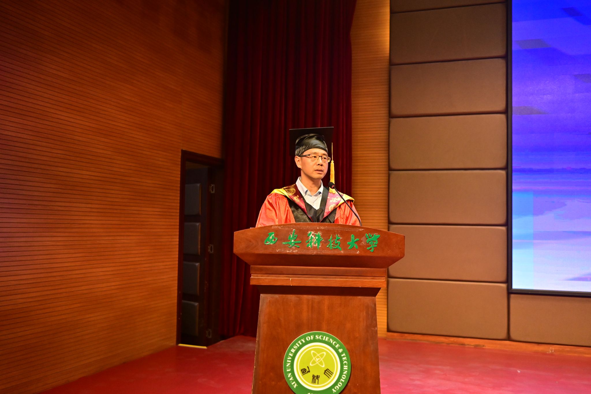 6月26日下午,taptap188平台2025届学生毕业典礼暨学位授予仪式在临潼校区骊山校园煤炭科技中心一楼报告厅温情启幕。学院班子全体成员,学院教授委员会成员、各系(部、中心、办公室)主任、教工党支部书记、教师代表,全体辅导员、家长代表、2025届全体毕业生共襄盛举。典礼由学院党委副书记郭胜忠主持。