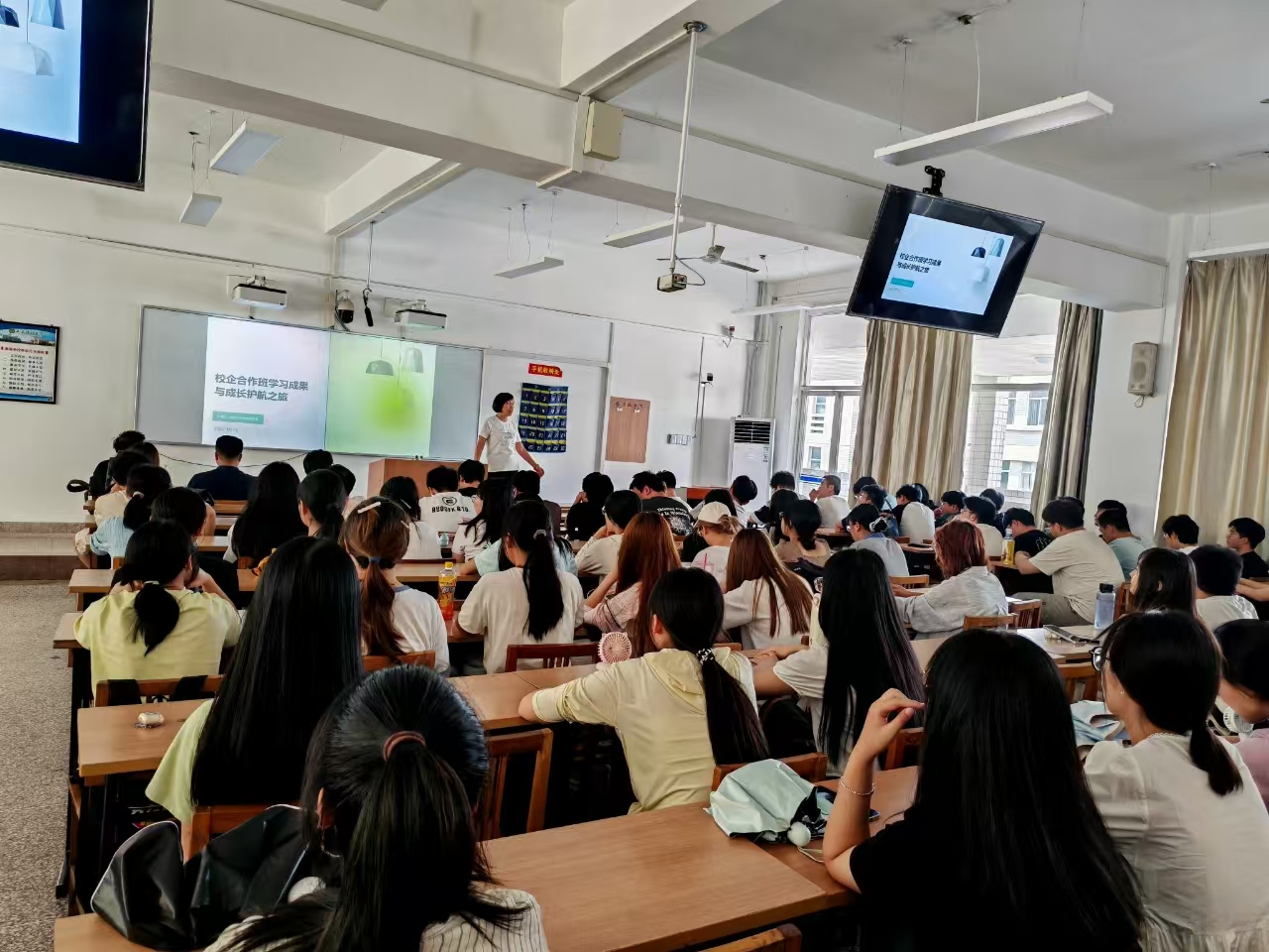 董立红从“梦想启航之路,探索、挑战与成长之旅,学习方向与内容、成果展示与分享”四个方面介绍了“成长护航训练营”第一期工作开展及取得成果,希望同学们及早规划、坚定信心、积极行动、迎难而上,奋力拼搏,开创属于自己的美好未来。