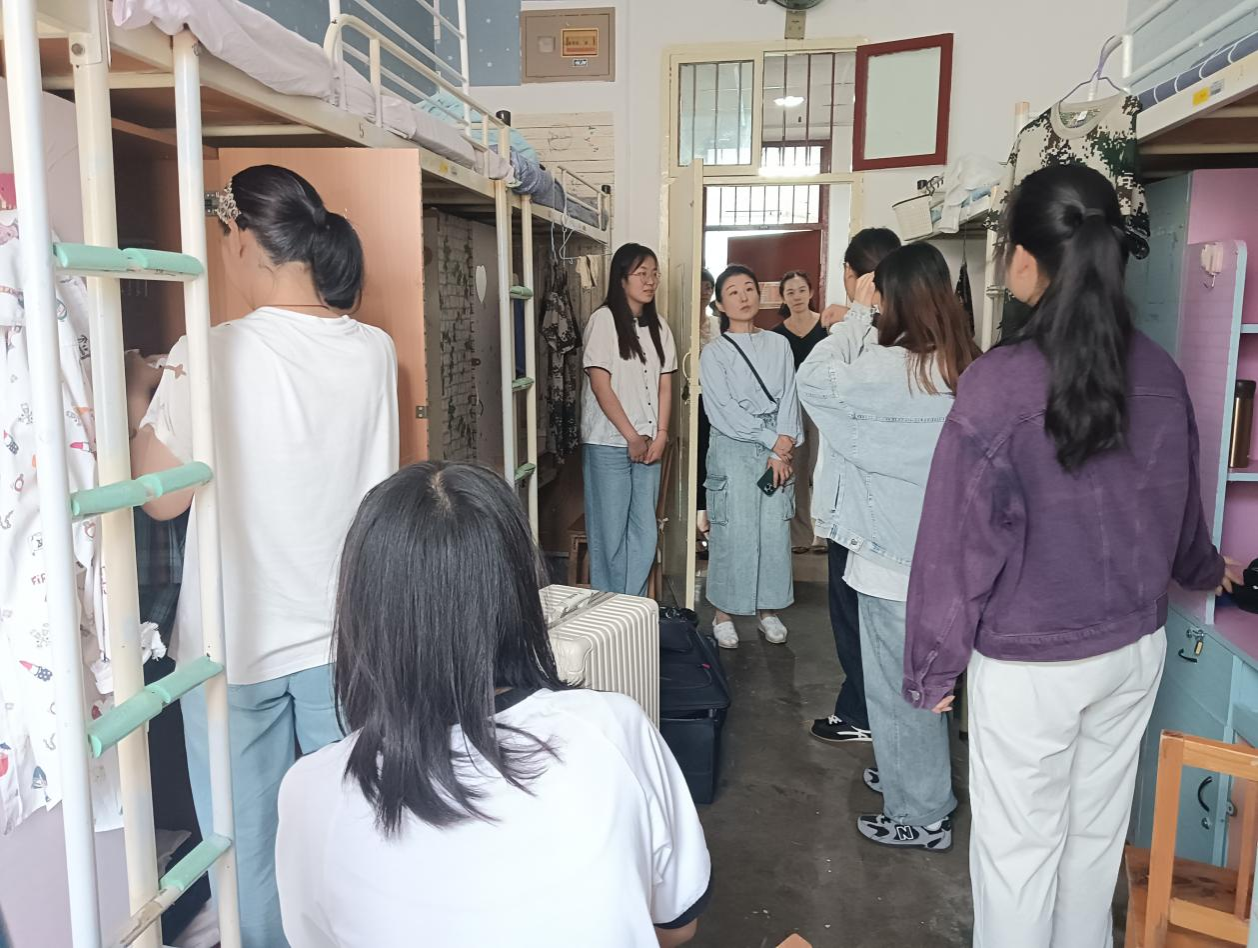 走访过程中,学院党委书记李绥波与新生们亲切交谈,详细询问他们对宿舍环境、餐饮服务的适应情况,并针对专业选择、职业规划等问题给予建议。