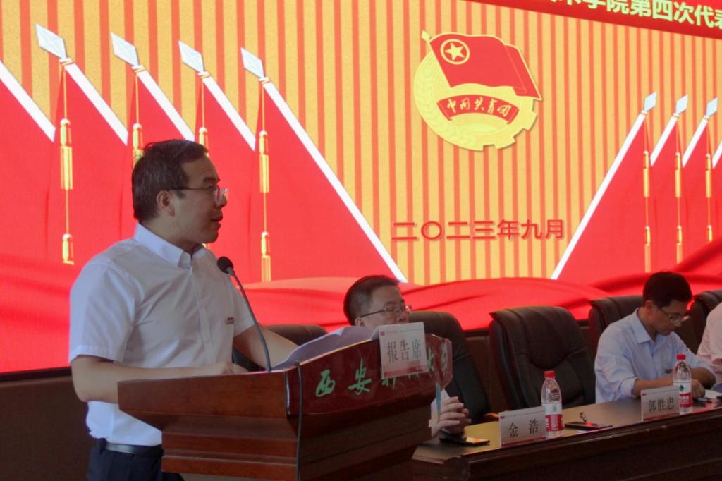 随后,学院党委书记李绥波代表学院党委向大会的胜利召开表示热烈祝贺。他指出,这是我院全体团员和广大青年学生政治生活中的一件大事,是承前启后、继往开来的一次青春盛会。这次会议的召开必将对我院青年学生深入贯彻党中央关于团学工作的部署,提高我院团学组织的凝聚力和战斗力,充分发挥我院团学组织在改革发展中的主力军作用,具有重大而深远的意义。他表示,学院团委坚定政治方向、把握时代主题、锐意改革创新、全面从严治团,用实干彰显了“党有号召,团有行动”的赤忱担当。最后,他对学院共青团工作和青年学生提出三点希望。第一,坚定理想信念,筑牢初心使命的奋进之力。第二,保持奋斗激情,弘扬永久奋斗的优良传统。第三,勇担时代重任,展现强国有我的青春风采。