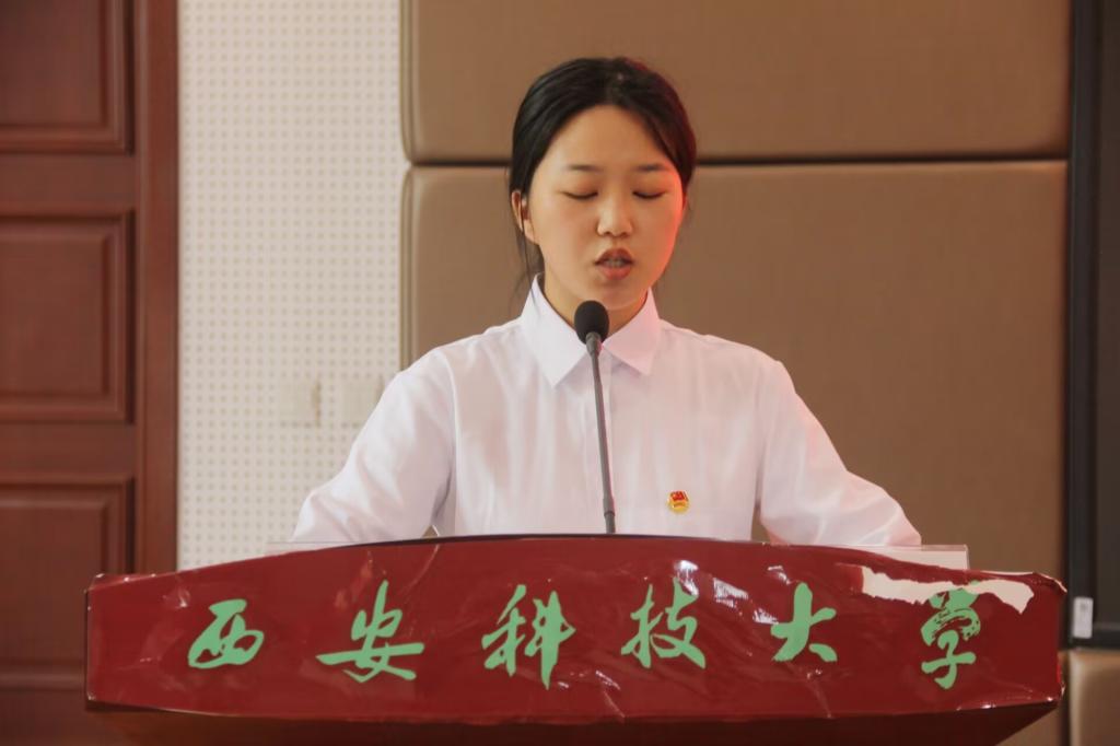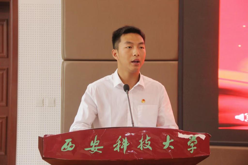校学生会主席团成员李凯宣读了大会倡议书,倡议与会代表作为新时代青年要自信自强、建功立业,彰显新时代中国青年的使命担当;要敢想敢为、善作善成,贡献新时代好青年的青春力量;要凝心聚力、笃行不怠,谱写新时代青年学子的绚丽华章。