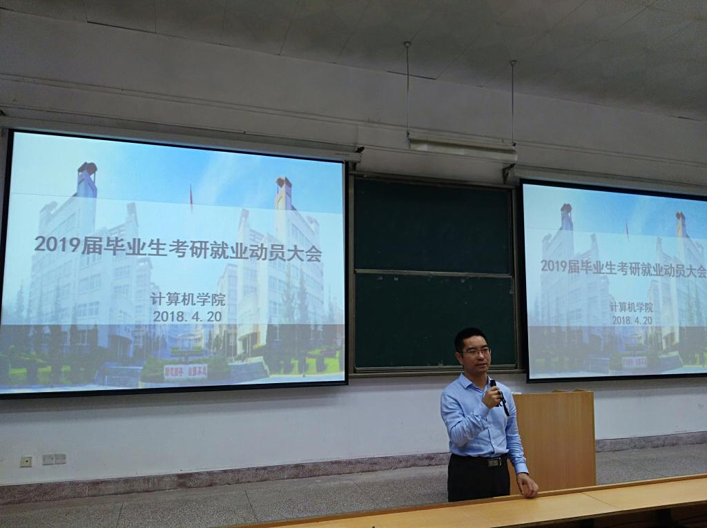 4月20日下午,计算机学院在临潼校区骊山校园举办2019届毕业生考研就业动员大会。学院党委副书记陈伟伯、副院长马天出席,2015级辅导员主持,2015级全体学生参加。